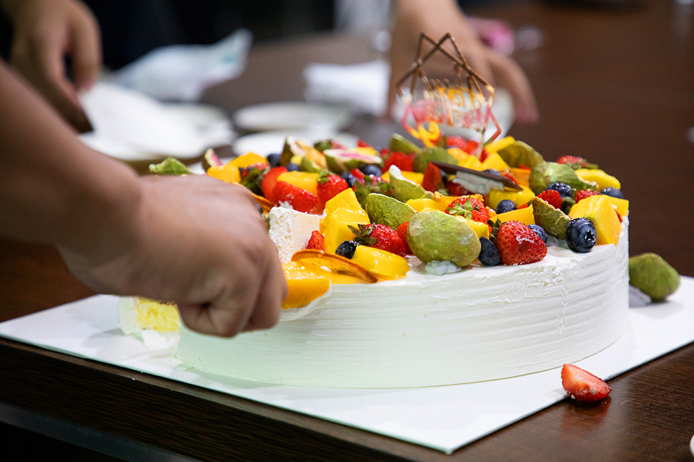 来到激动人心的时刻,唱生日歌、许愿并分享生日蛋糕,切蛋糕环节更是由安总喊出一个幸运数字,根据数字抽取到现场一位寿星幸运儿来到台前为大家切蛋糕。