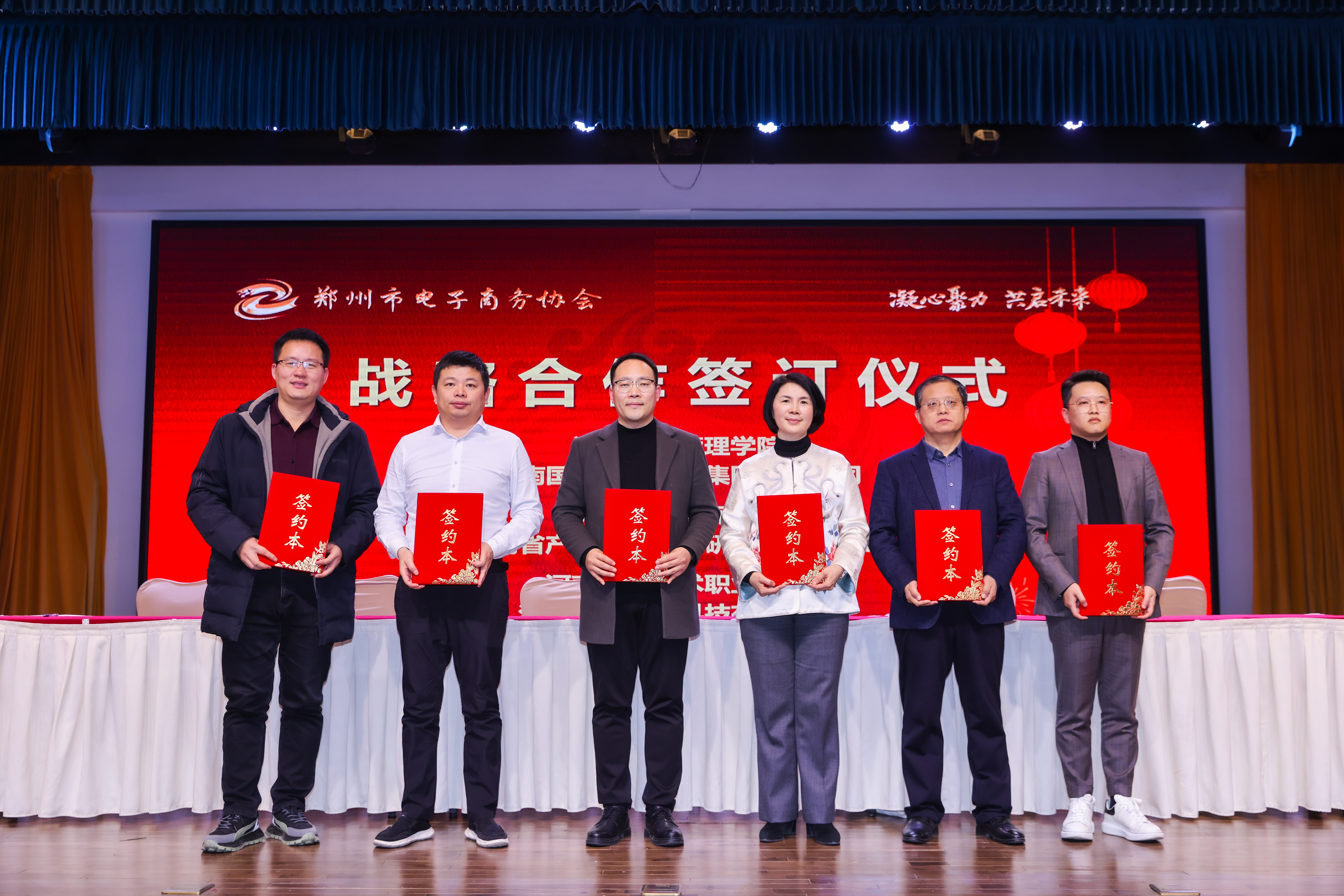 2024年1月23日下午,2121非凡集团参加在黄河饭店报告厅举办的以“凝心聚力 共启未来”为主题的郑州市电子商务协会会员大会,会议中被授予“突出贡献企业”荣誉,同时与郑州大学进行战略合作签约。